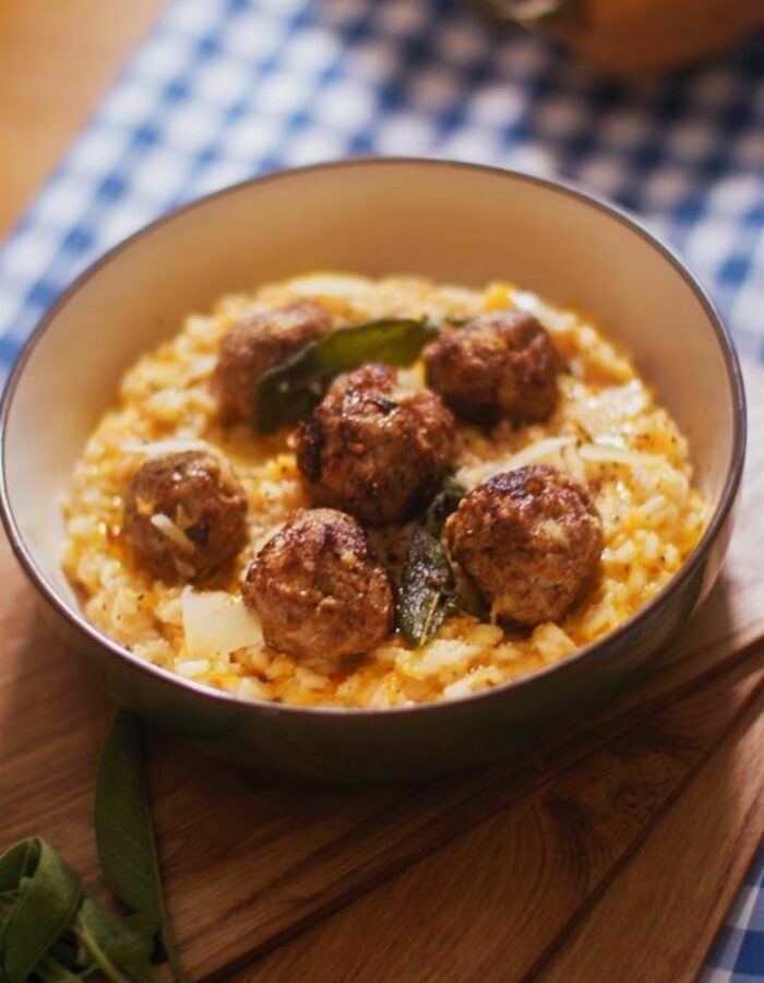 Just Jess Food’s pumpkin spiced risotto with Specially Selected Pork Meatballs