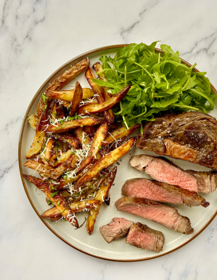Ultimate Air Fryer Steak Frites with Rosemary, Parmesan and Garlic Fries